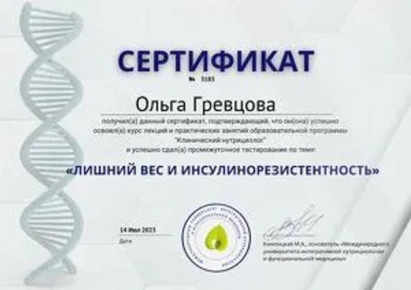 - Международный университет интегративной нутрициологии и функциональной медицины, лишний вес и инсулинорезистентность, 2023 г.