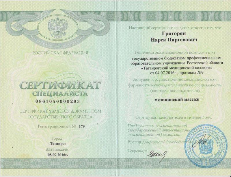 ► Григорян Нарек Паргевович работает территориально: Таганрог, выезжает на дом: Таганрог.