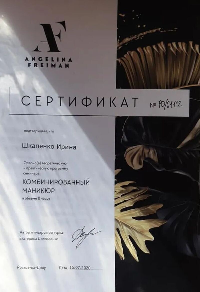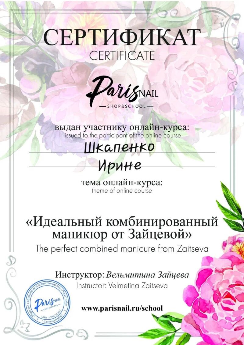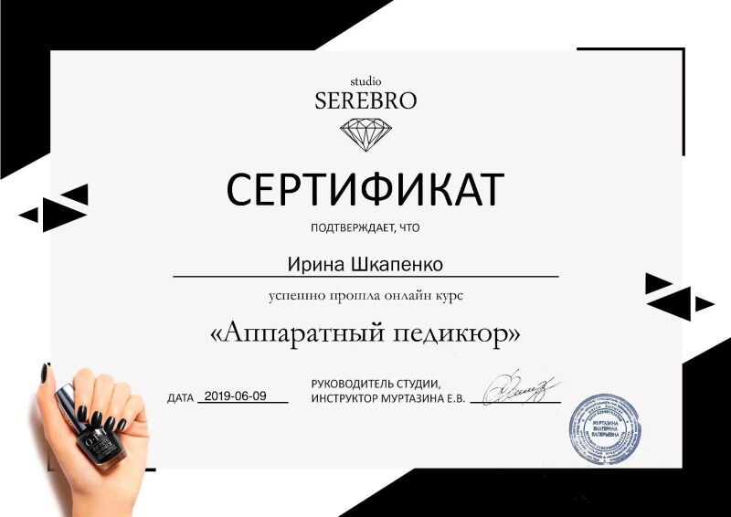 - Курс Веры Малиновой «Комбинированный маникюр и покрытие под кутикулу», 2019 г.