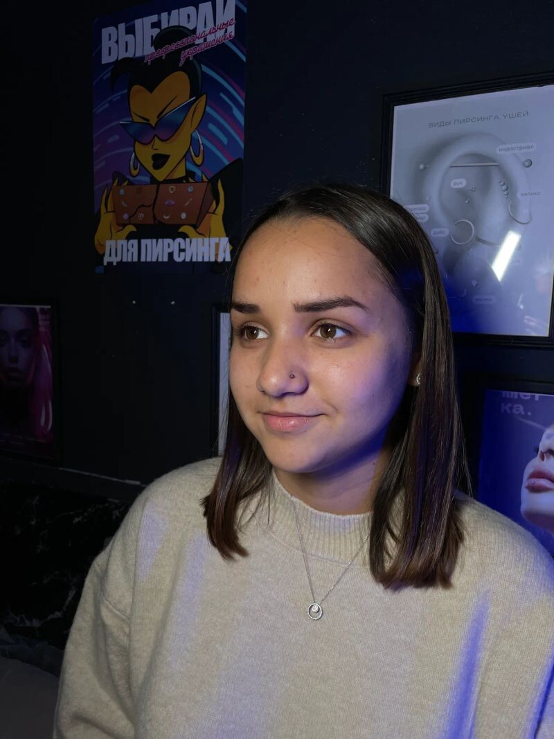 Очень понравилась работа мастера, видно, что человек действительно заинтересован в своей работе и результате, много знает и регулярно обновляет свои знания :) Процедура была безболезненна, мастер по ходу все объясняла, рассказывала о нюансах, дала рекомендации. Все инструменты стерильные, были вскрыты прямо при мне, мастер соблюдала правила асептики, что для меня очень важный пункт. Как итог - аккуратный пирсинг, по которому даже не скажешь, что сделан буквально вчера) Однозначно советую выбрать именно Яну, если хотите профессионально и аккуратно выполненную работу😊