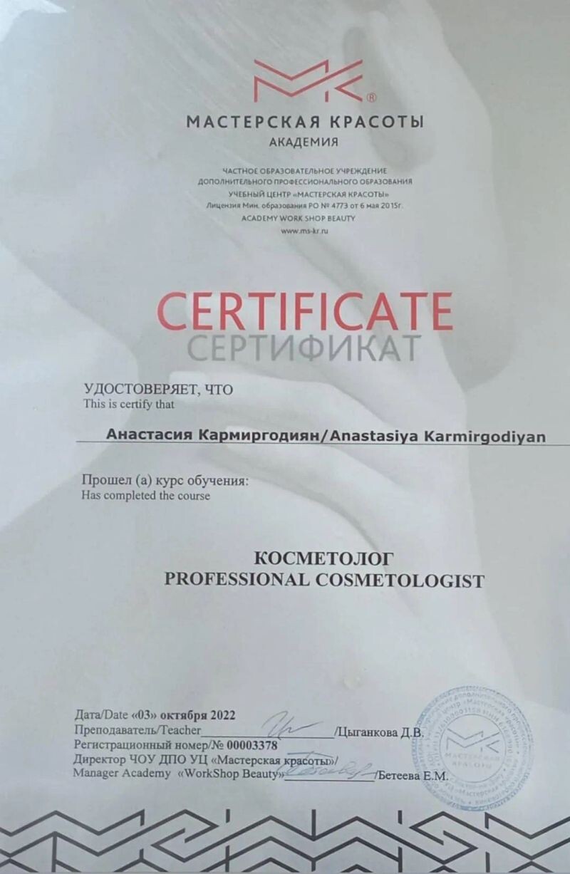 - Мастерская красоты, курс «Косметолог», 2022 г.