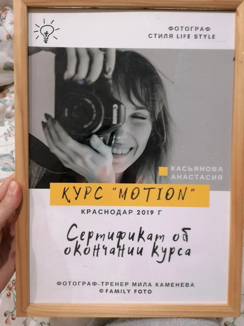 - Санкт-Петербургская школа телевидения, фотограф-специалист, 2015 г.