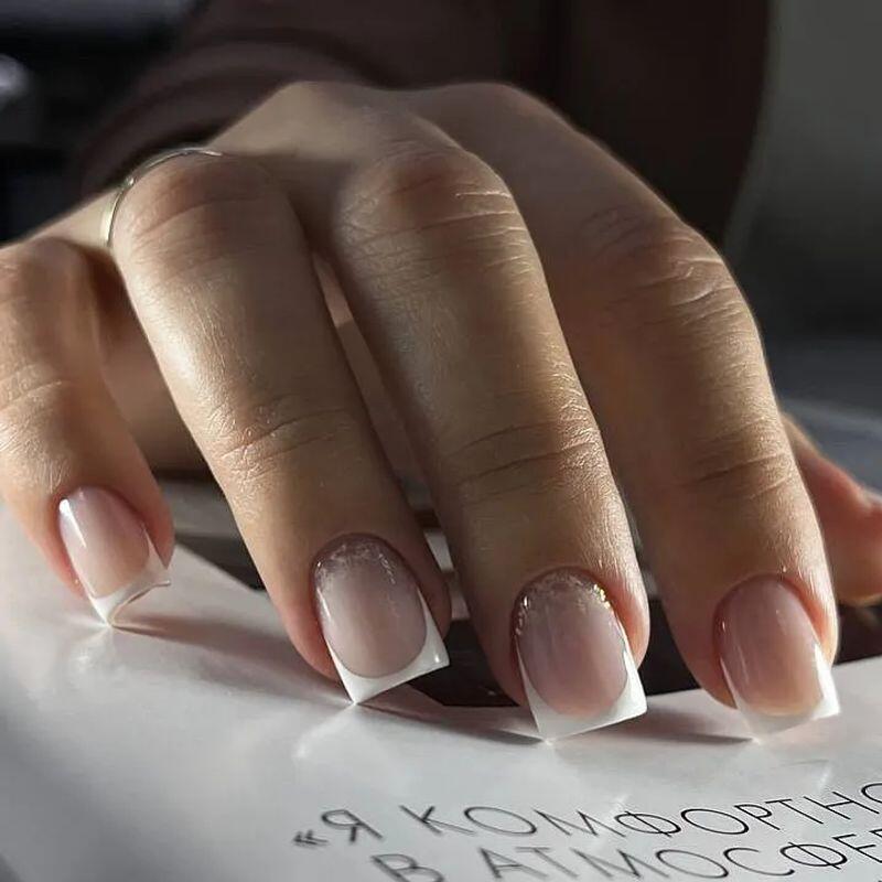 - Френч-гель 2000 ₽ за усл.Снятие покрытия, комбинированный маникюр, укрепление гелем +френч, массаж ручек с кремом