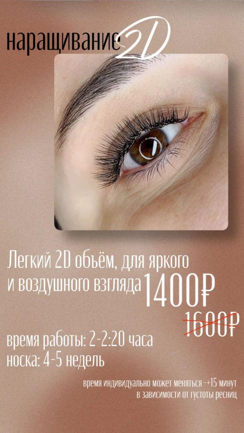- 2D-наращивание ресниц 1400 ₽ за услугу