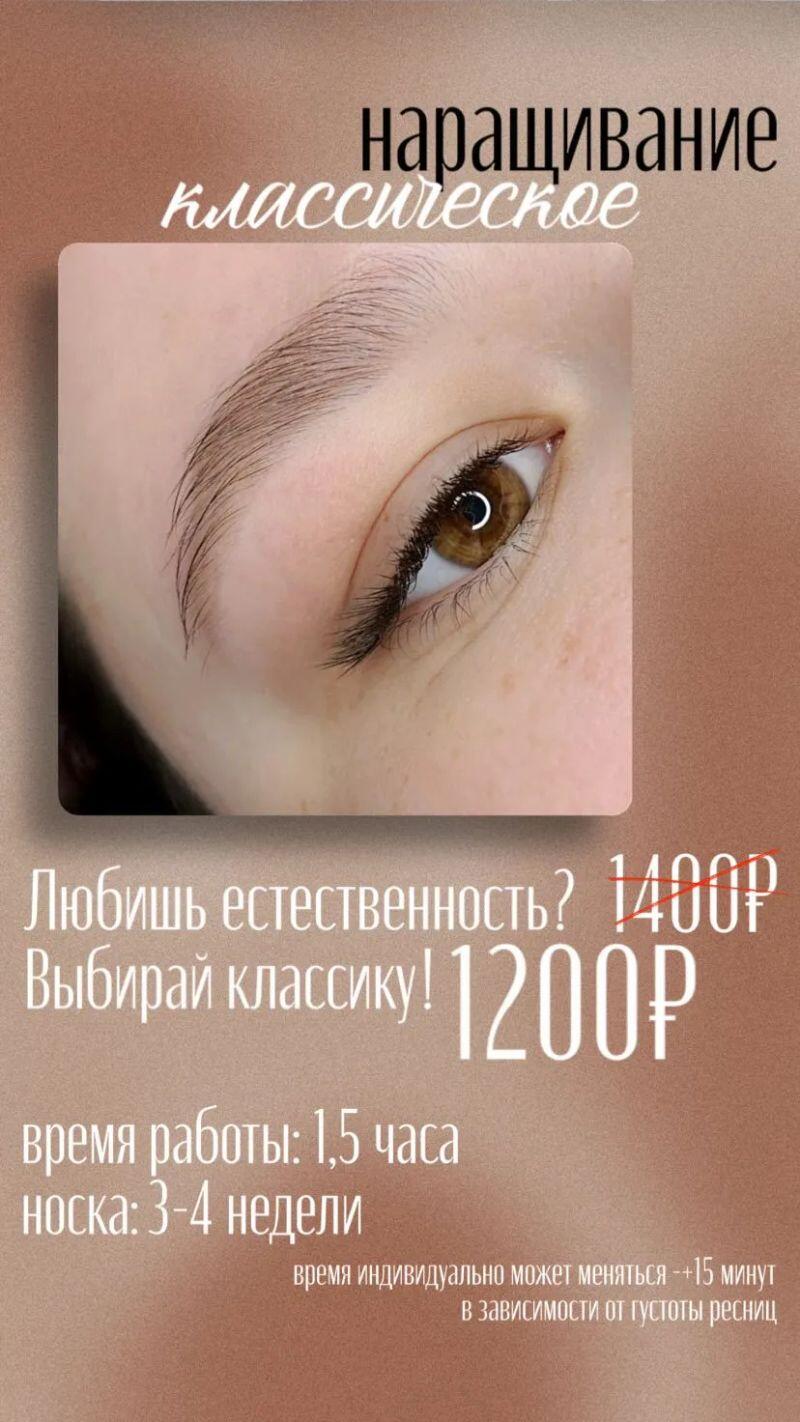 - 1,5D-наращивание ресниц 1200 ₽ за услугу