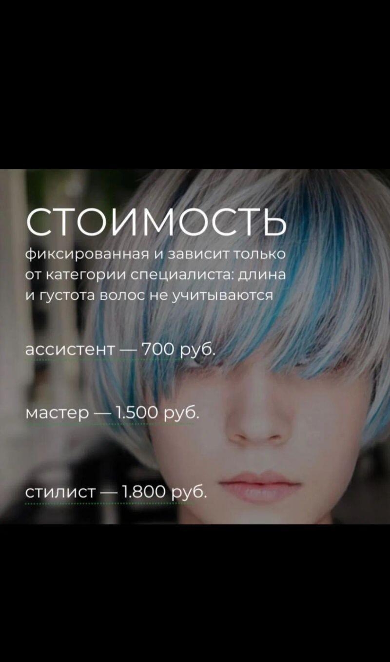 - Парикмахер 800 ₽ за усл.Женская стрижка