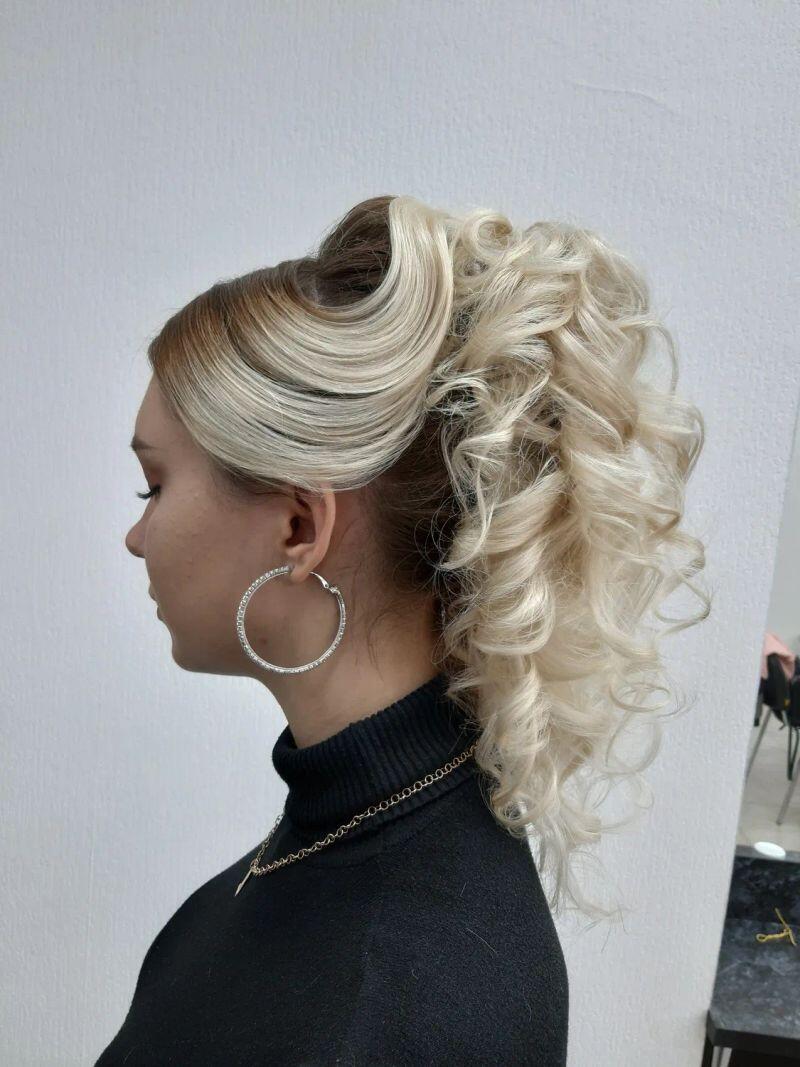 - Причёски 2000 - 3500 ₽ за услугуВечерняя прическа с неведимками, шпильками от 2000р зависит от сложности