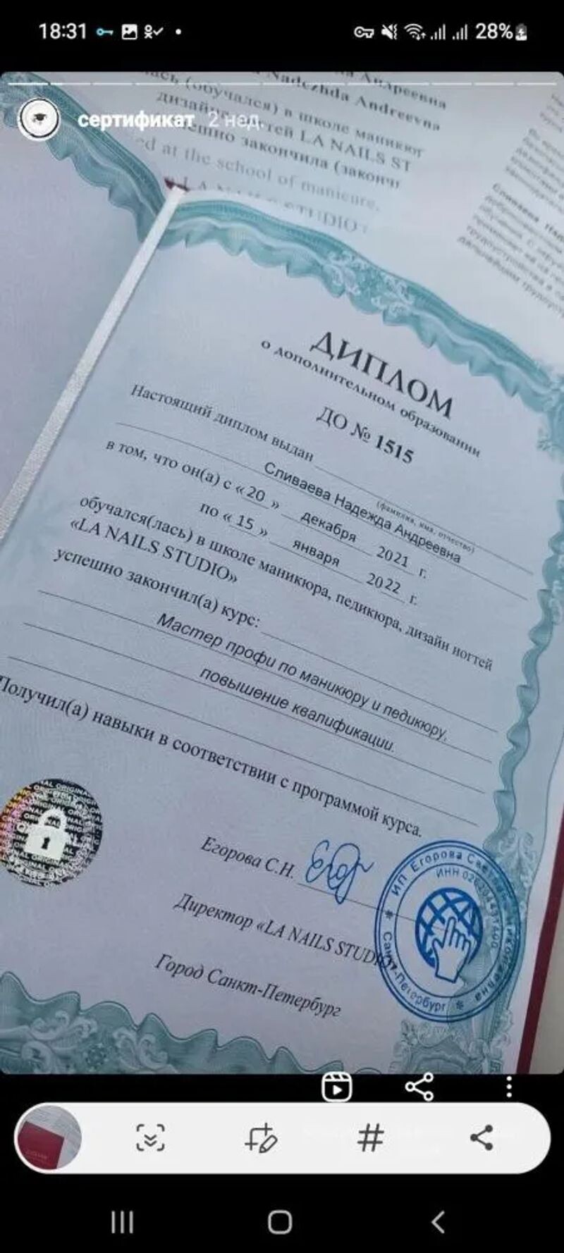 - LA NAILS STUDIO, мастер по маникюру и педикюру, 2021–2022 гг.