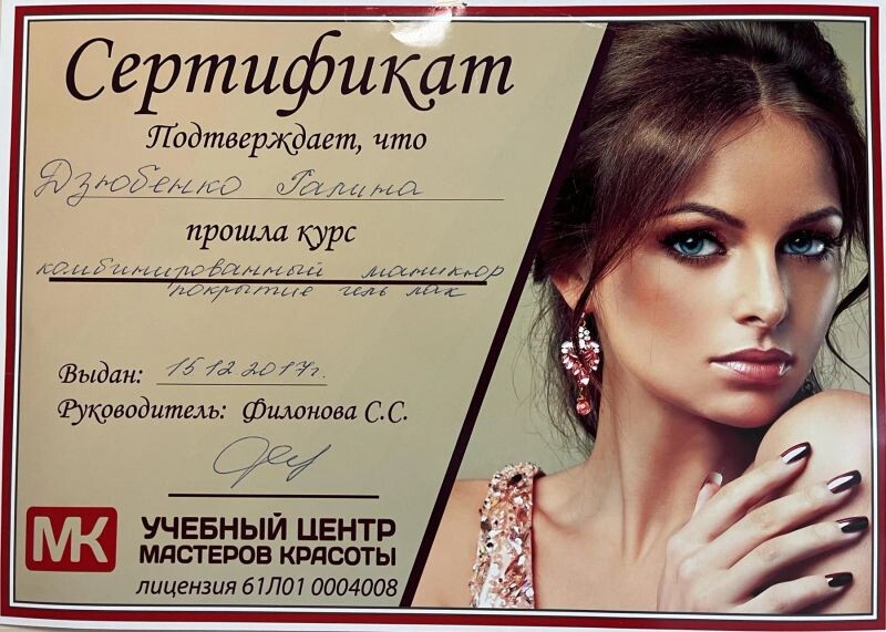 - УЦ мастеров красоты, мастер маникюра, 2017 г.