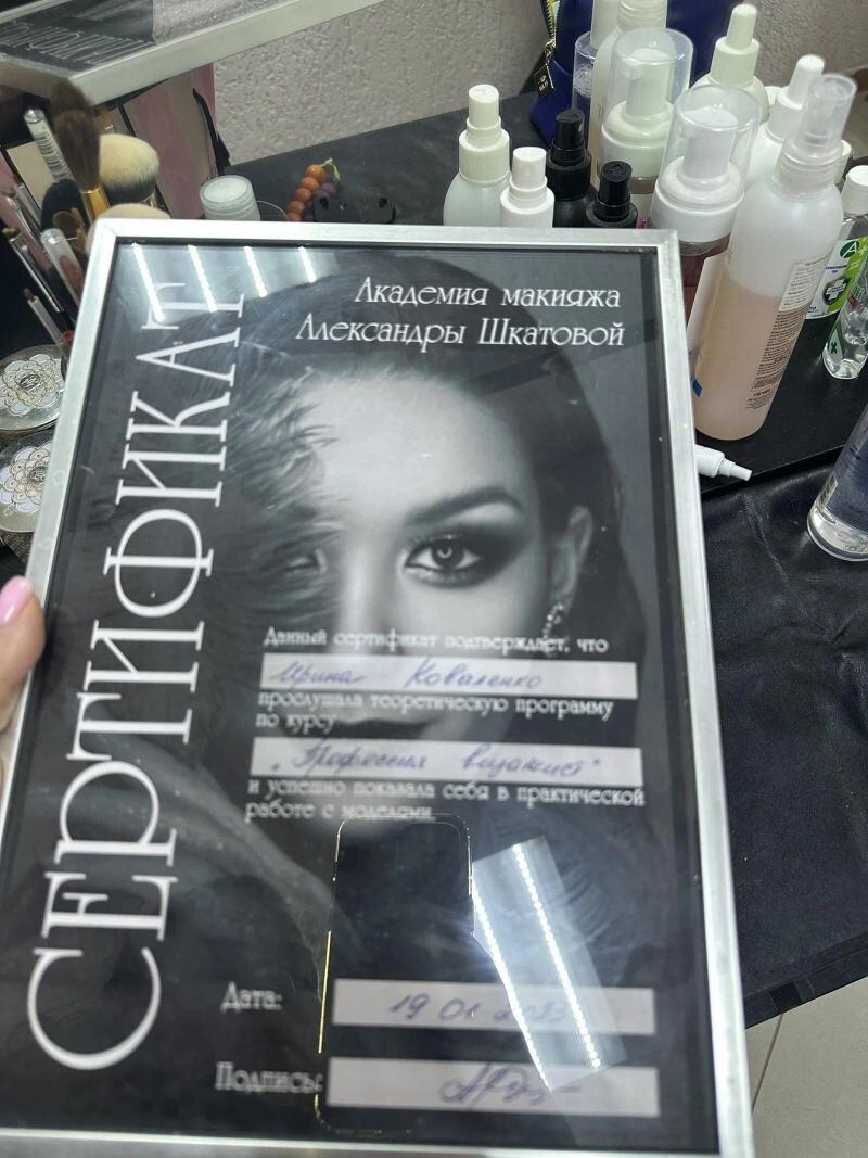 - Академия макияжа Александры Шкатовой, курс «Профессия визажист», 2023 г.