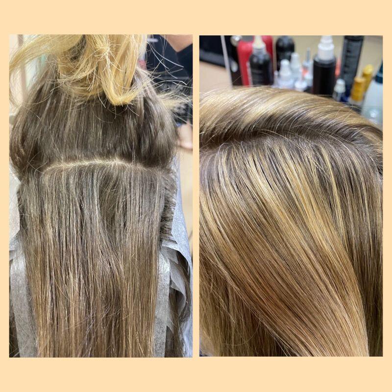 - Прикорневое мелирование 2500 - 5000 ₽ за усл.В услугу входит мелирование, тонирование, узоловая процедура