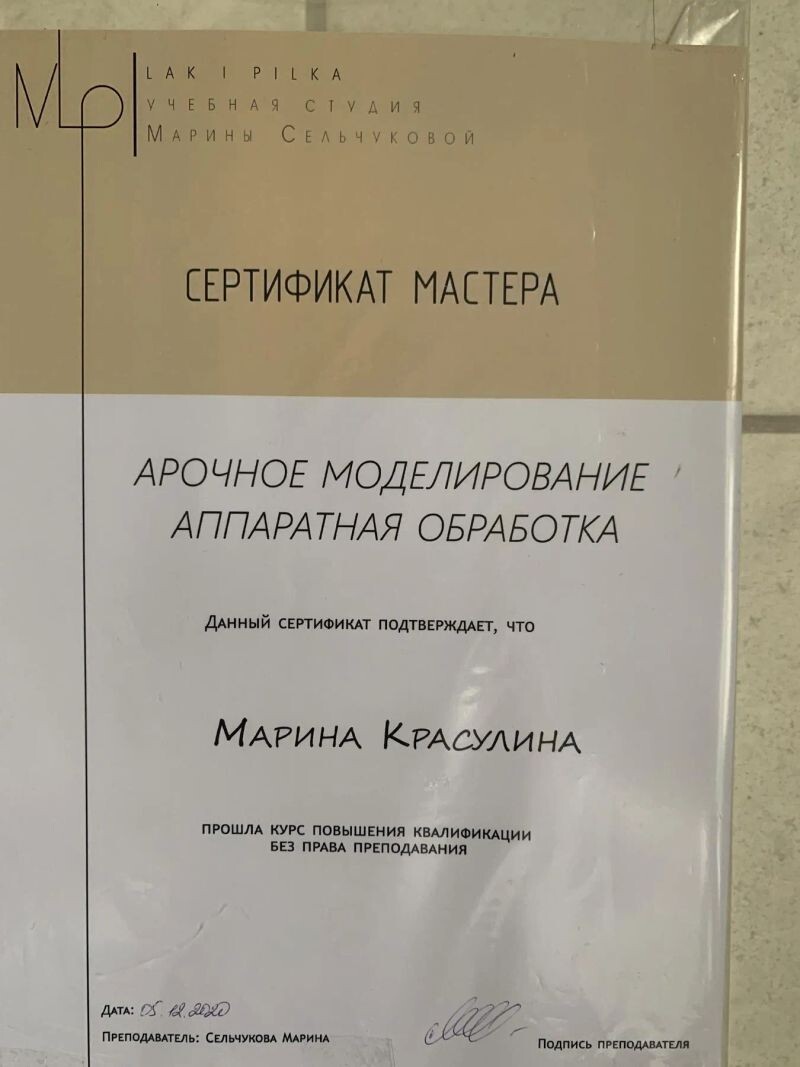 - Семинар Марии Сорокиной «Моделирование ногтей гелем», 2020 г.
