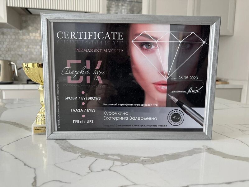 - Школа перманентного макияжа K Profi, базовый курс «Брови. Глаза. Губы», 2023 г.