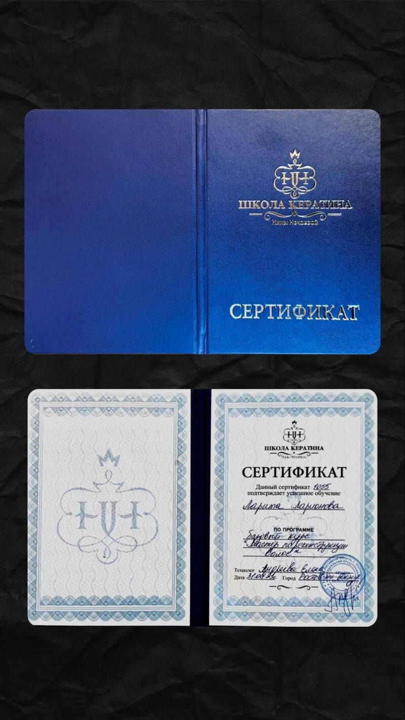 - Школа кератина Нины Нечаевой, мастер по реконструкции волос, 2023 г.