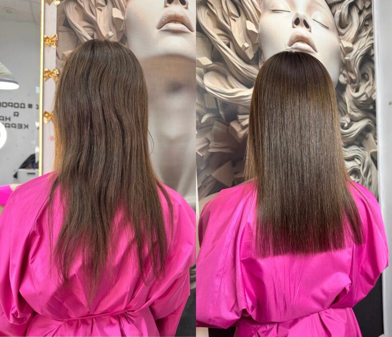 - Реконструкция волос 4500 - 10000 ₽ за усл.Это идеально прямые, блестящие волосы на срок от 3 до 6 месяцев !