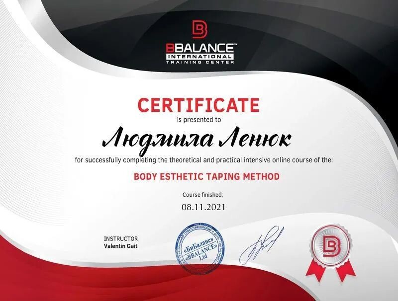 - Bbalance, курс «Эстетическое тейпирование тела», 2021 г.