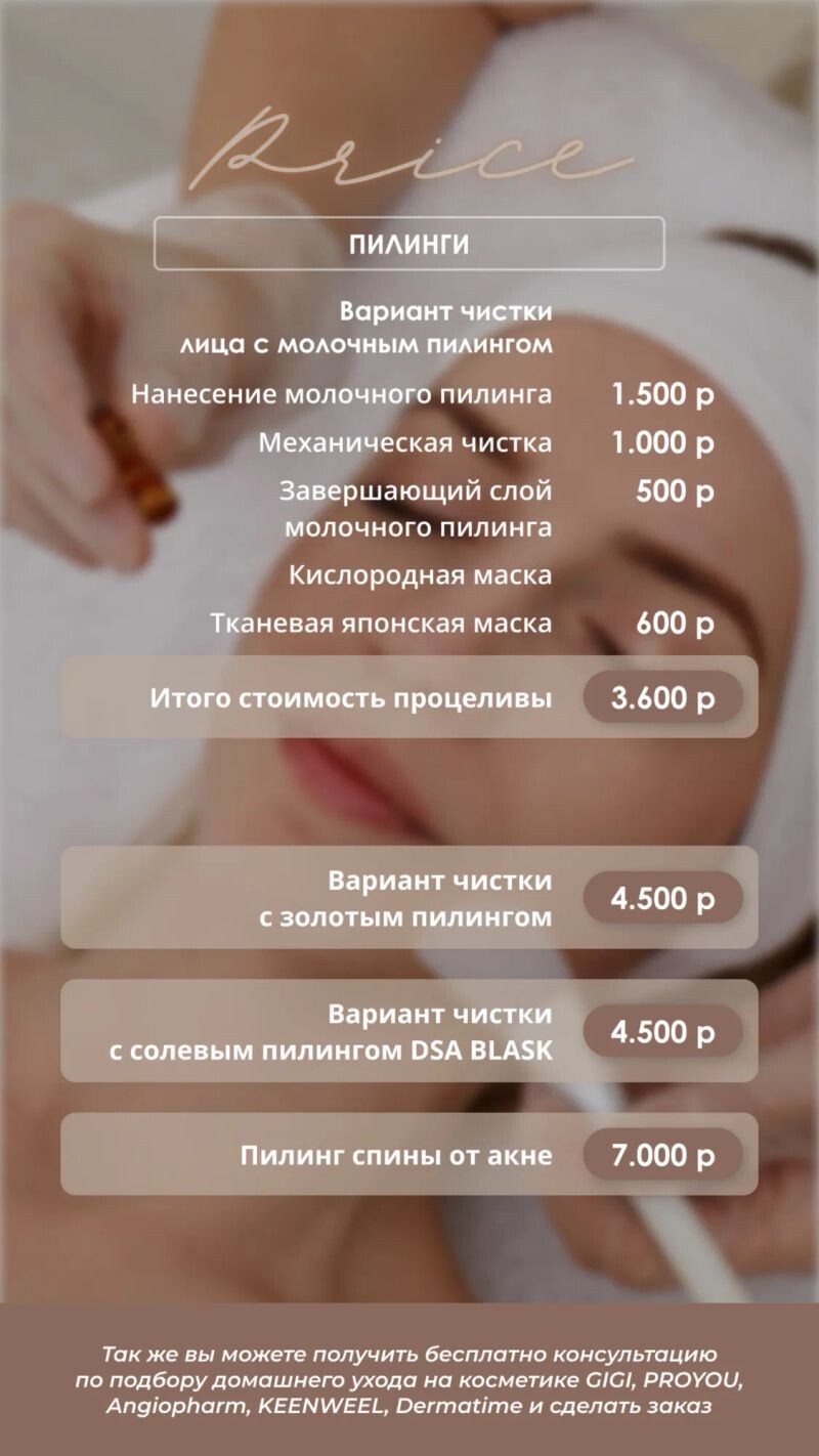 - Пилинг лица уточняется при заказе