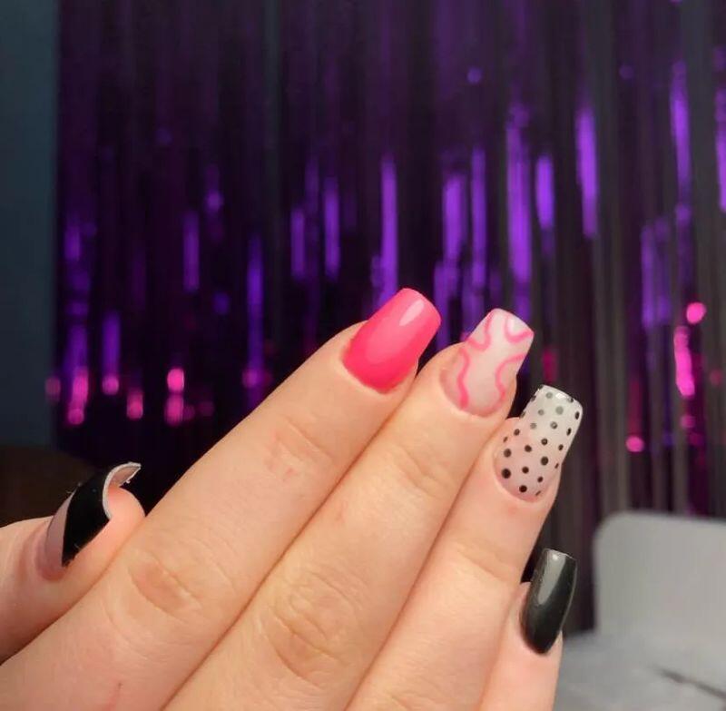 Маникюр гель-лаком, дизайн ногтей, комбинированный маникюр