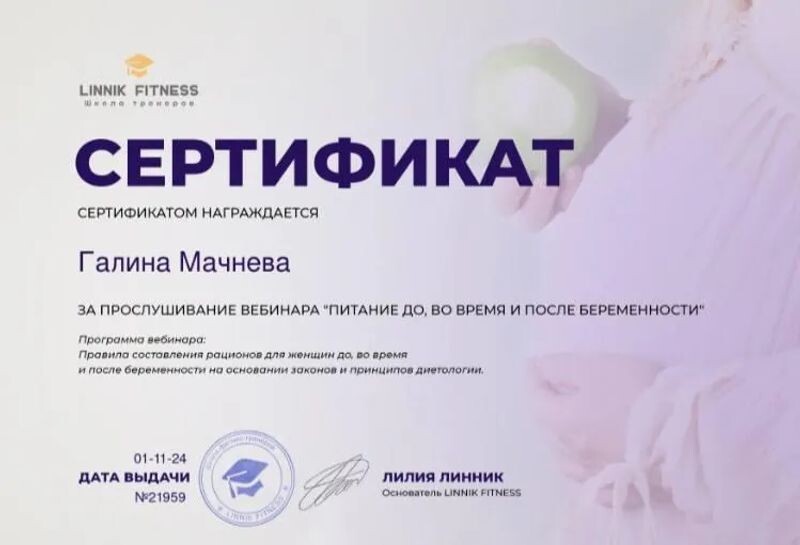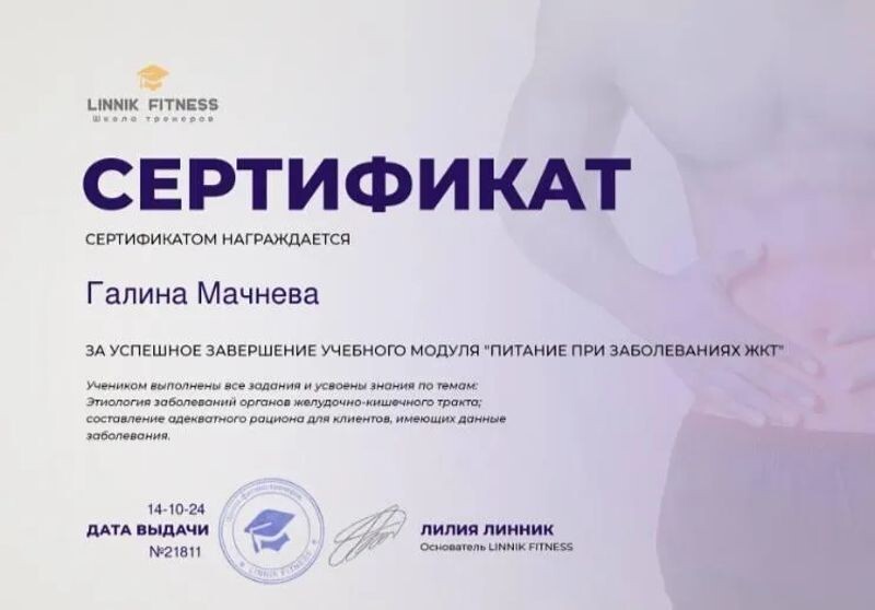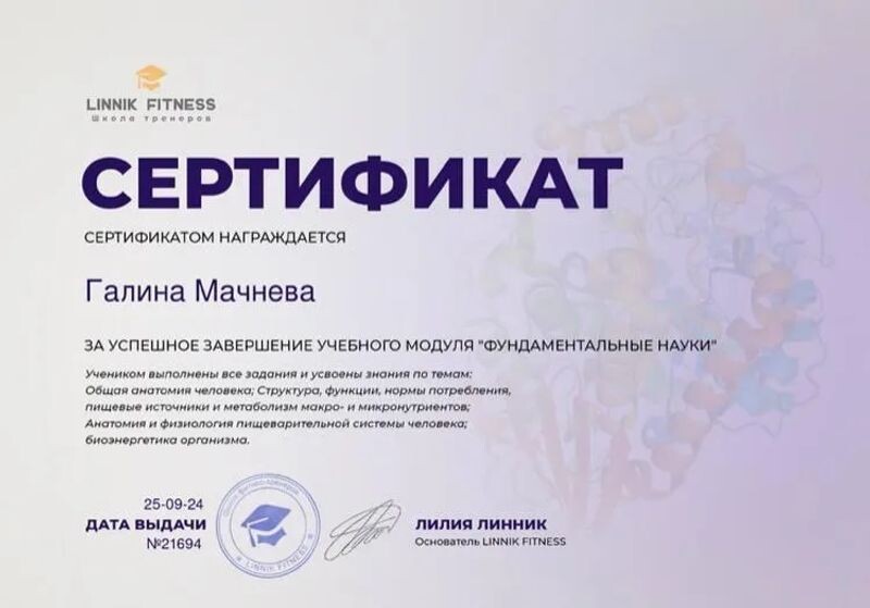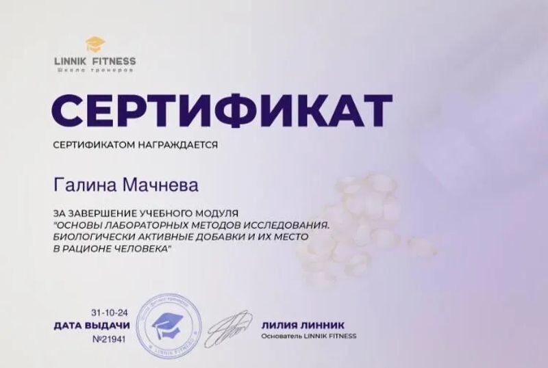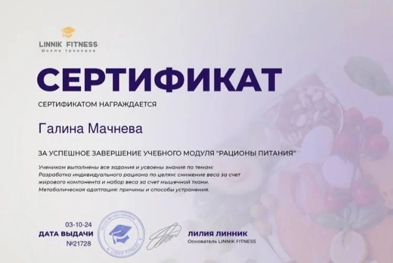 - LINNIK FITNESS, Основы нутрициологии, Нутрициолог, 2024 г.