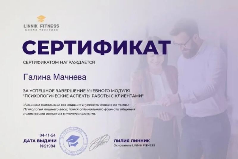 - Школа тренеров, психологические аспекты работы с клиентами, 2024 г.