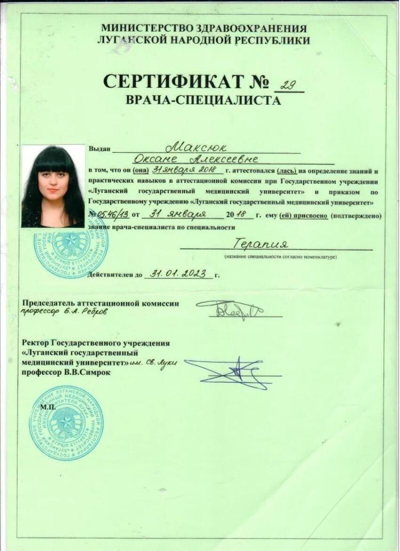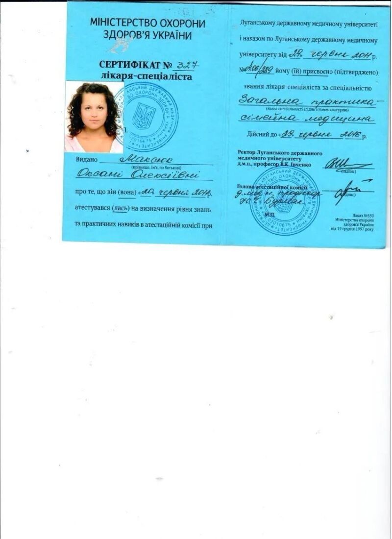 - Луганский государственный медицинский университет, лечебное дело, 2003–2009 гг.