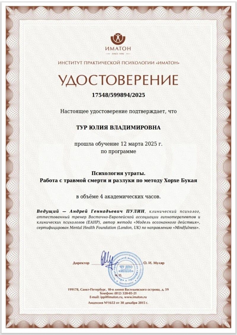 - Работа с травмой смерти и разлуки (с 2025 г.).