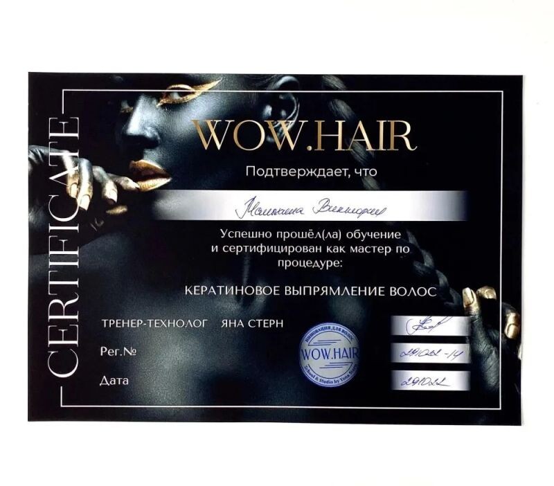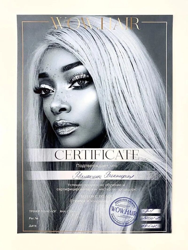 - Wow.hair, мастер по процедуре: ботокс волос (горячая, холодная техника), 2022 г.