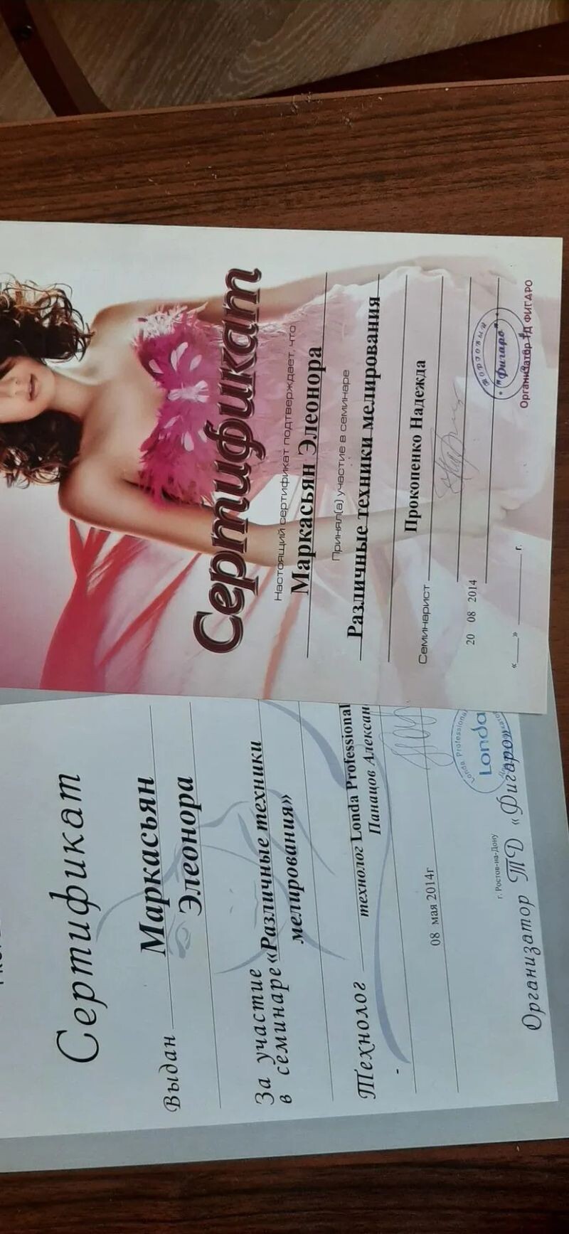 ► Связаться с Маркасьян Элеонорой Сергеевной можно за пару минут. Нажмите на кнопку «Записаться к мастеру» и заполните короткую форму.