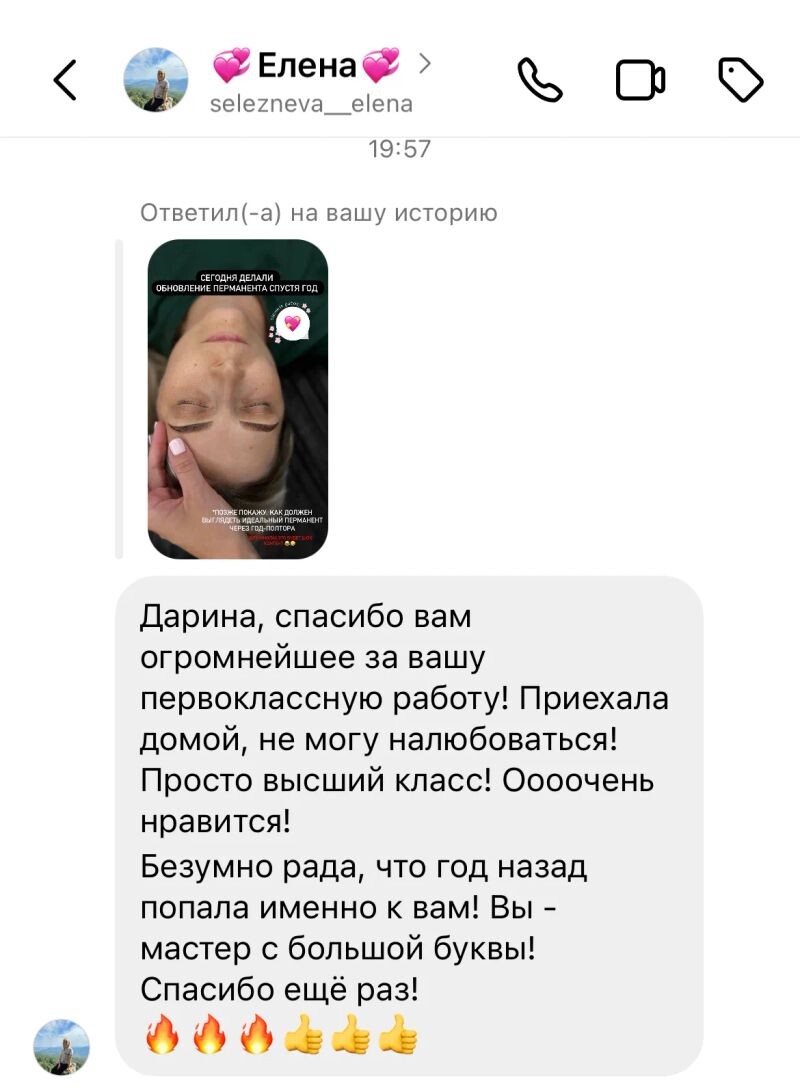 - Мастер по перманенту бровей, межресничной зоны и ламинированию ресниц — 7 лет.