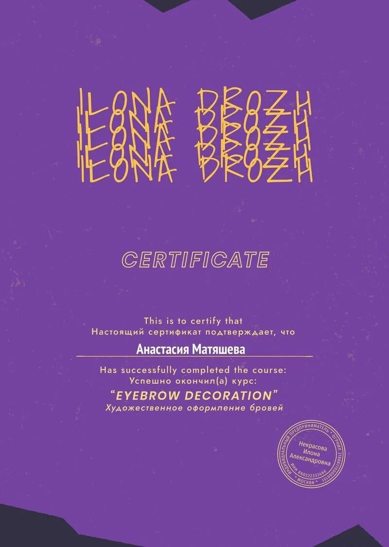 - Курс Илоны Дрожь, художественное оформление бровей, 2022 г.