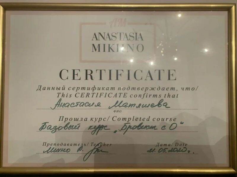 - «Бровист с 0», курс Анастасии Михно, 2020 г.