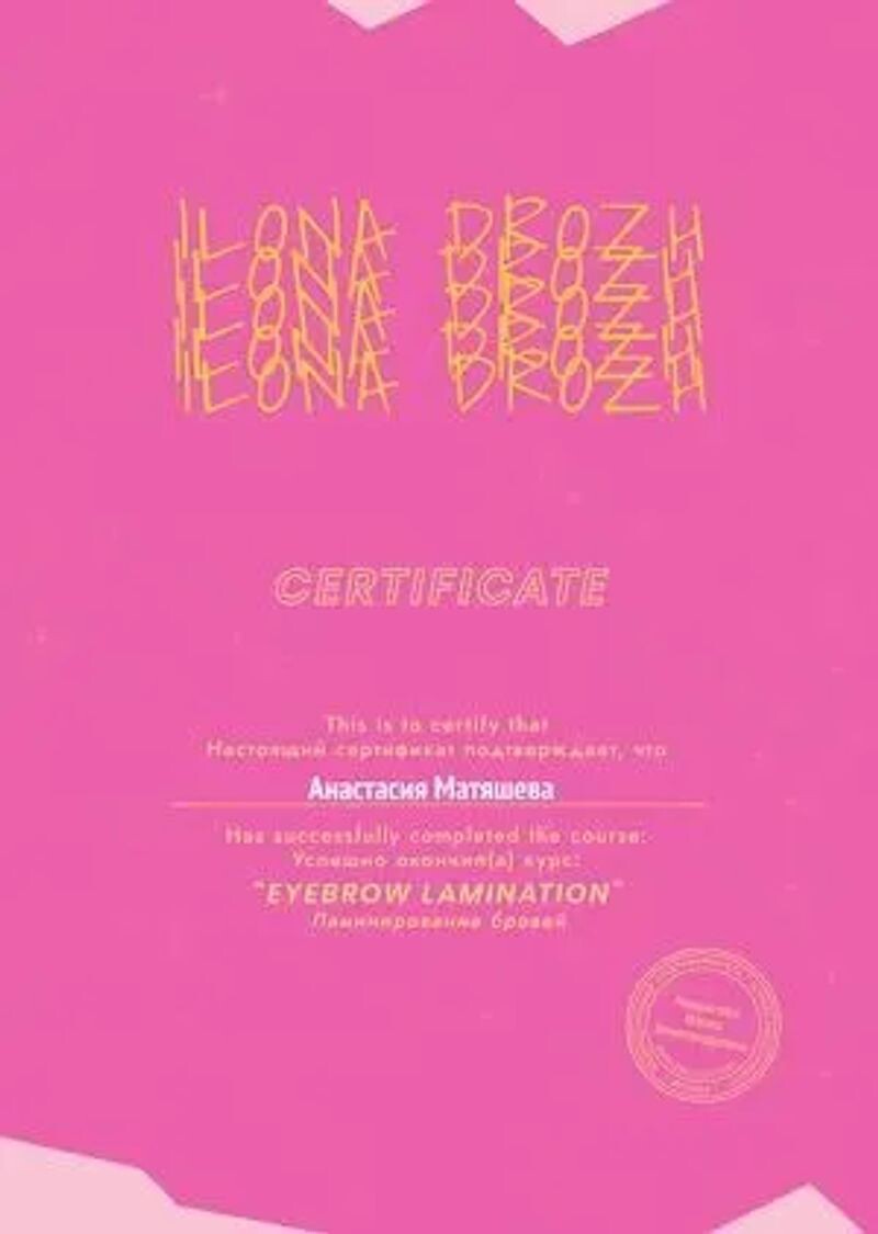- Курс Илоны Дрожь, ламинирование бровей, 2022 г.