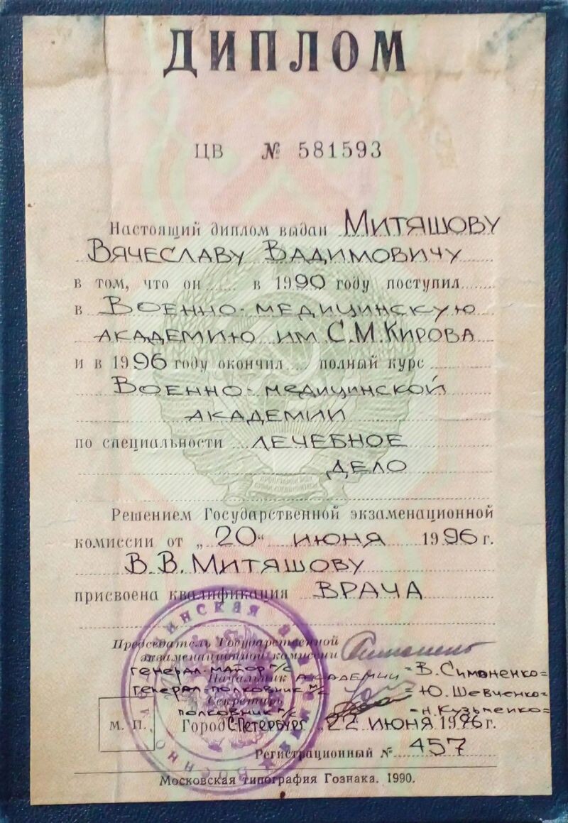 - Военно-медицинская академия им. С. М. Кирова 4 факультет подготовки врачей для военно-морского флота, 1990–1996 гг.