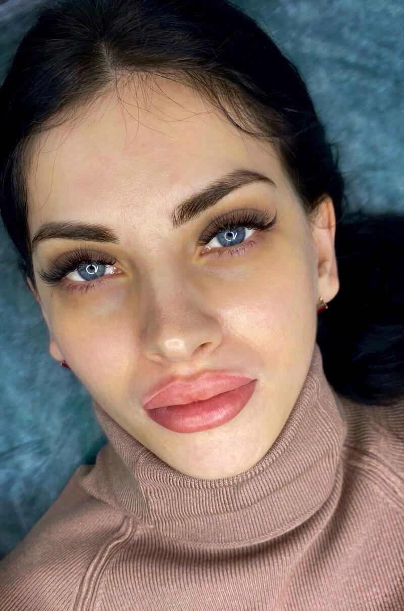 Пудровое напыление бровей, напыление губ, помадное напыление губ