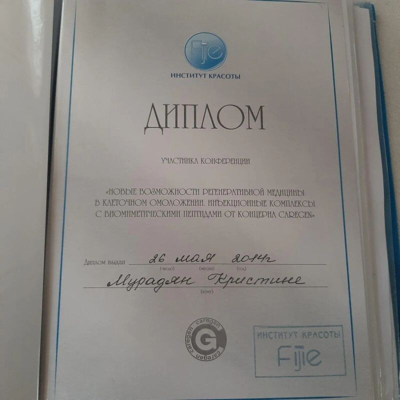 - Институт красоты, участник в конференции по клеточном омоложении, 2014 г.