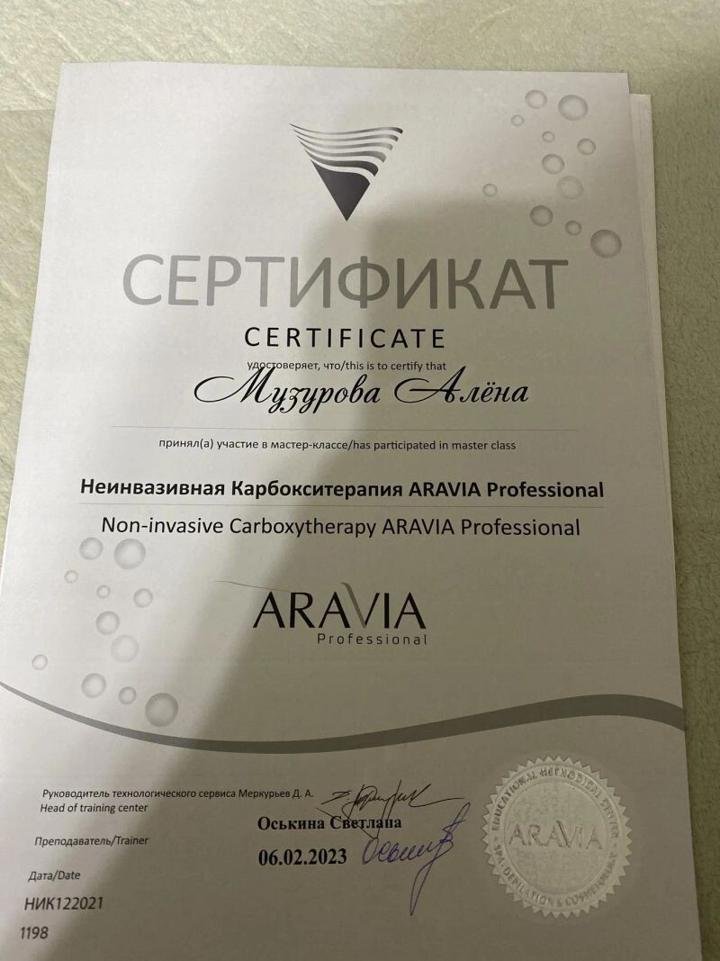 - Aravia Professional, мастер-класс «Неинвазивная карбокситерапия», 2023 г.