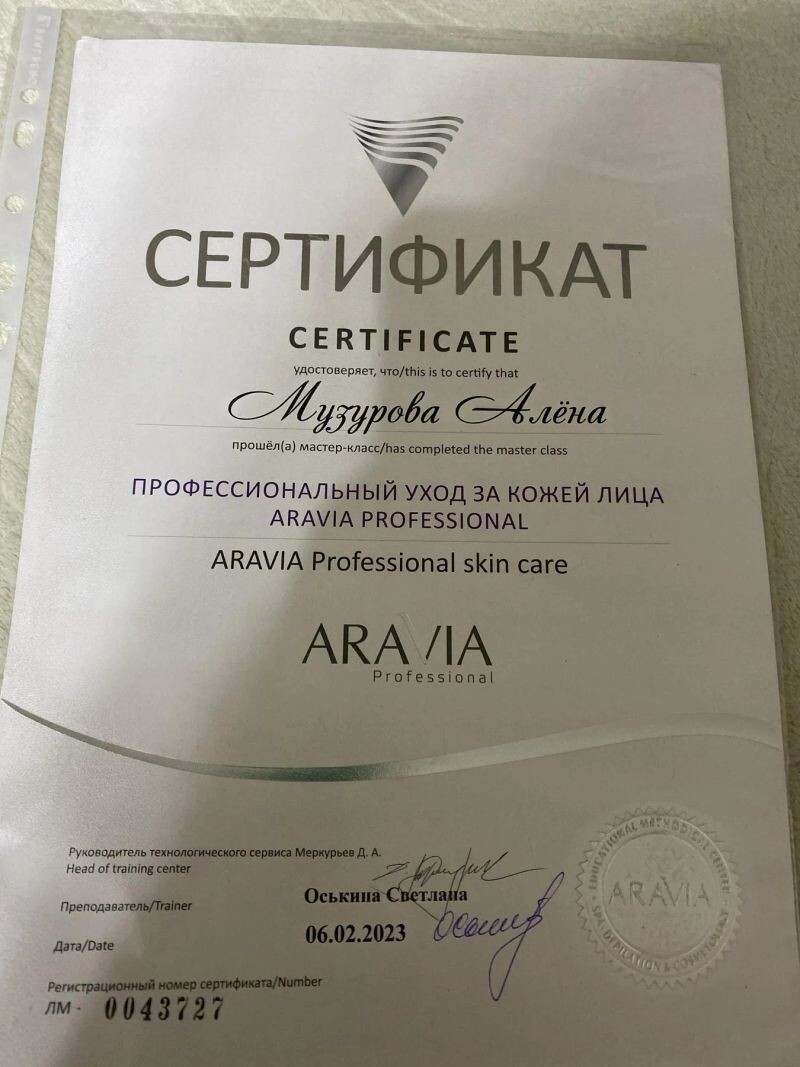 - Aravia Professional, мастер-класс «Профессиональный уход за кожей лица», 2023 г.