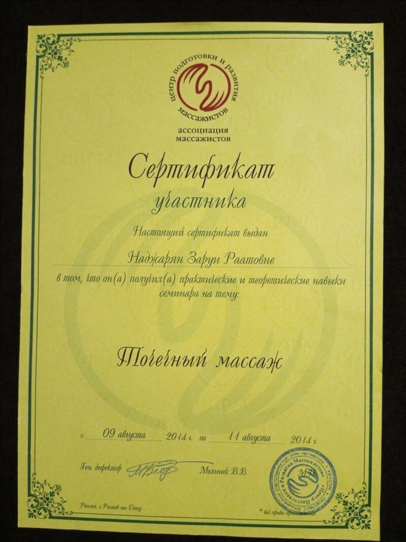 - Центр подготовки и развития массажистов, точечный массаж, 2014 г.