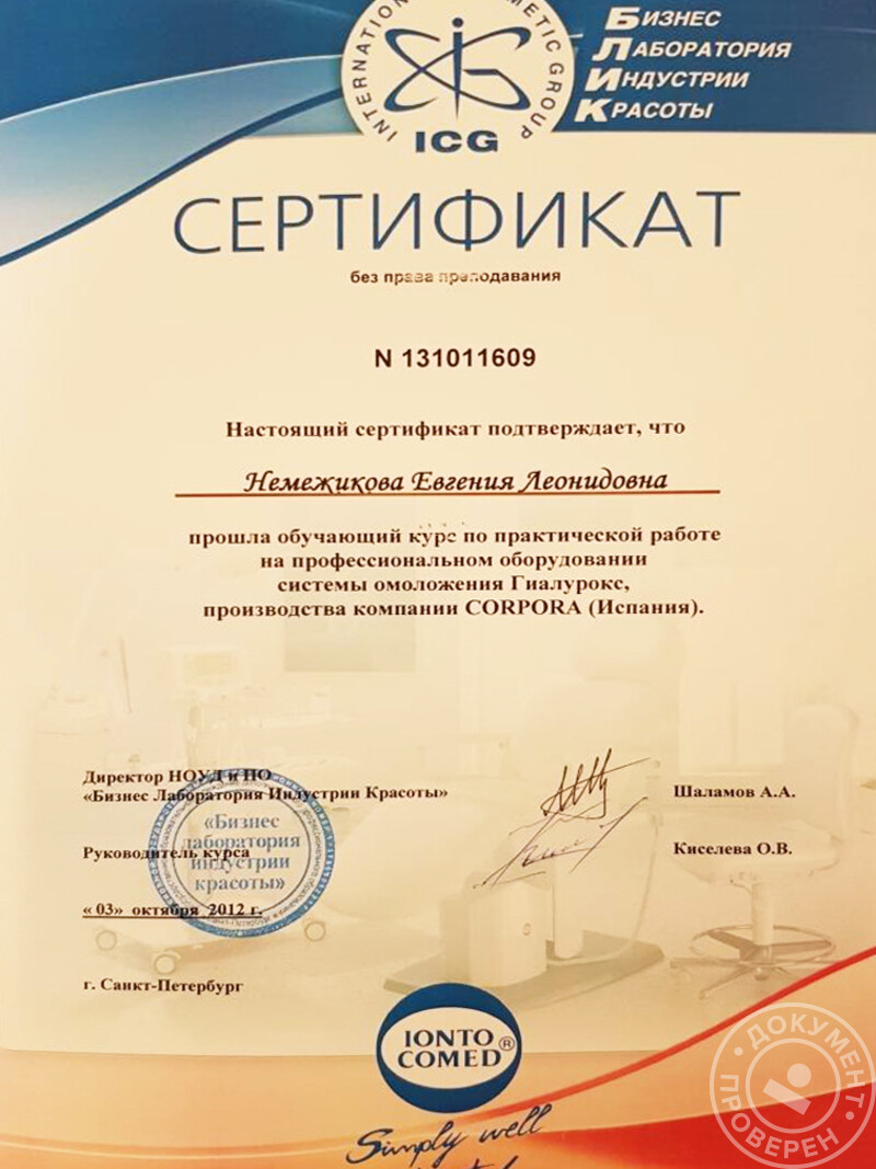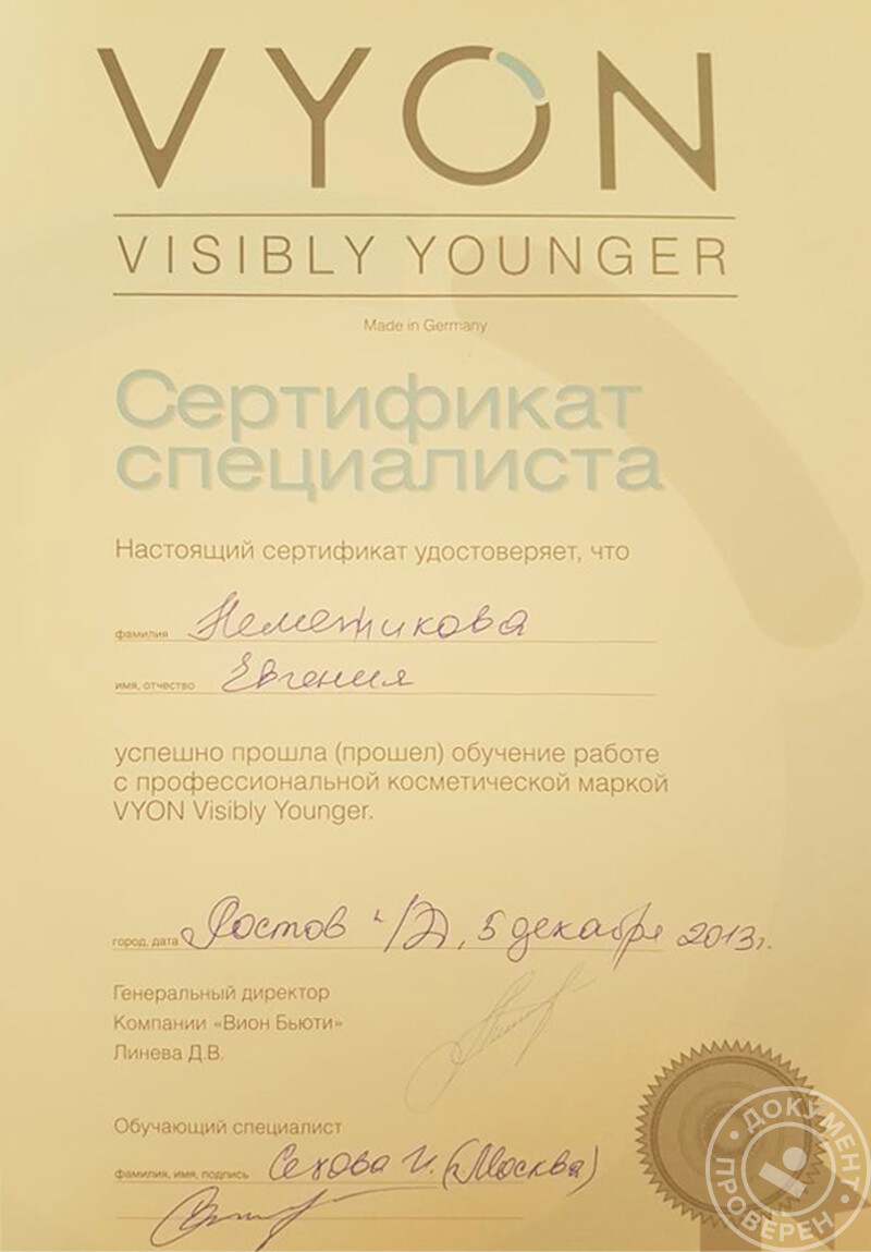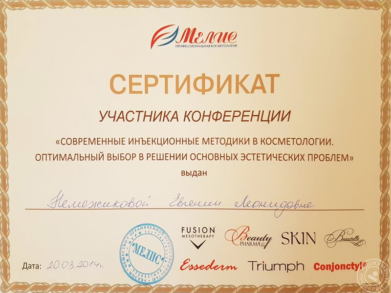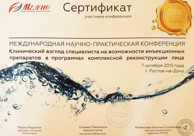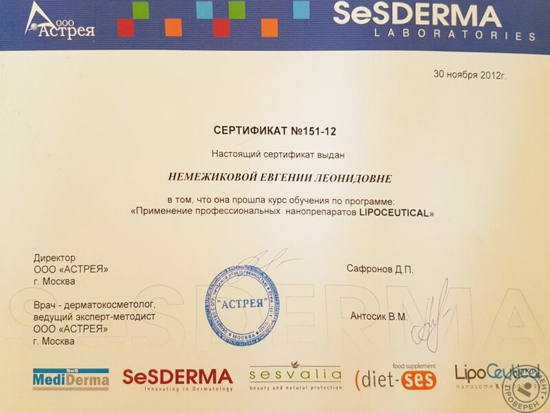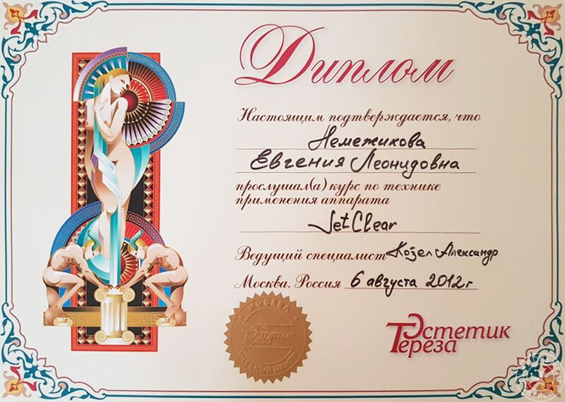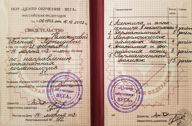 - УЦ «Вега», аппаратная косметология (2003 г.).