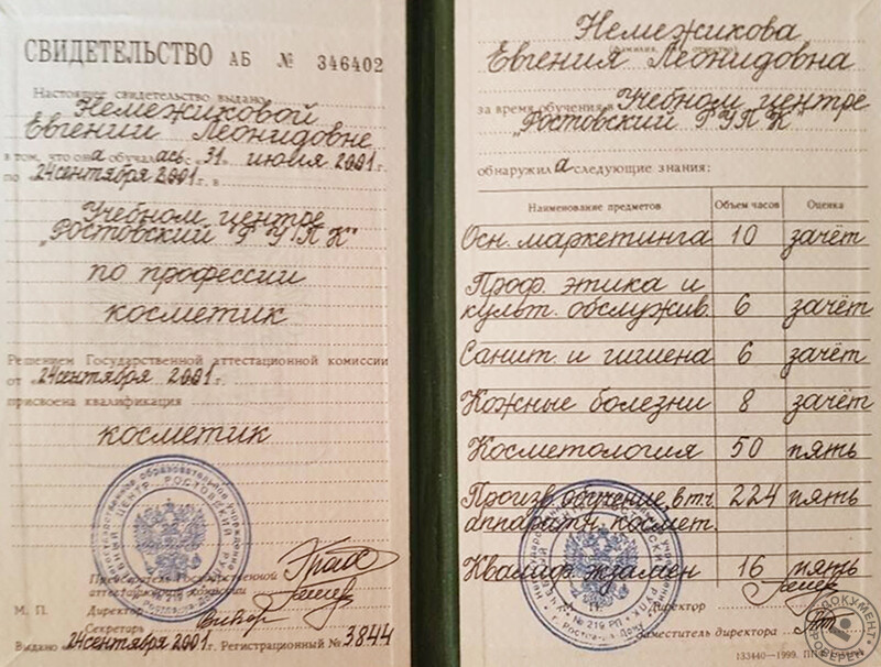 - Ростовский учебно-производственный комплекс, косметик (2001 г.).