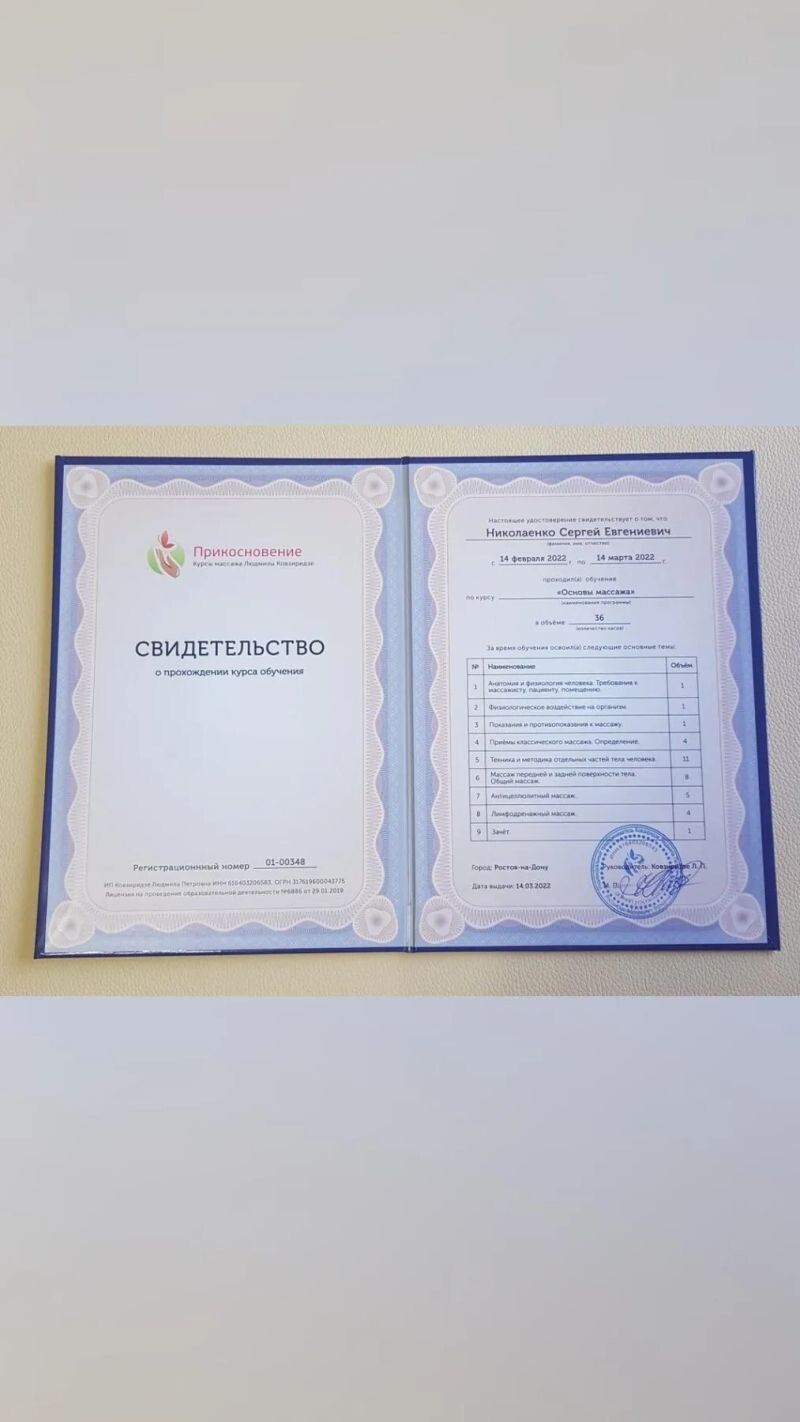 - Курсы массажа Людмилы Ковзиридзе «Прикосновение», курс «Основы массажа», 2022 г.
