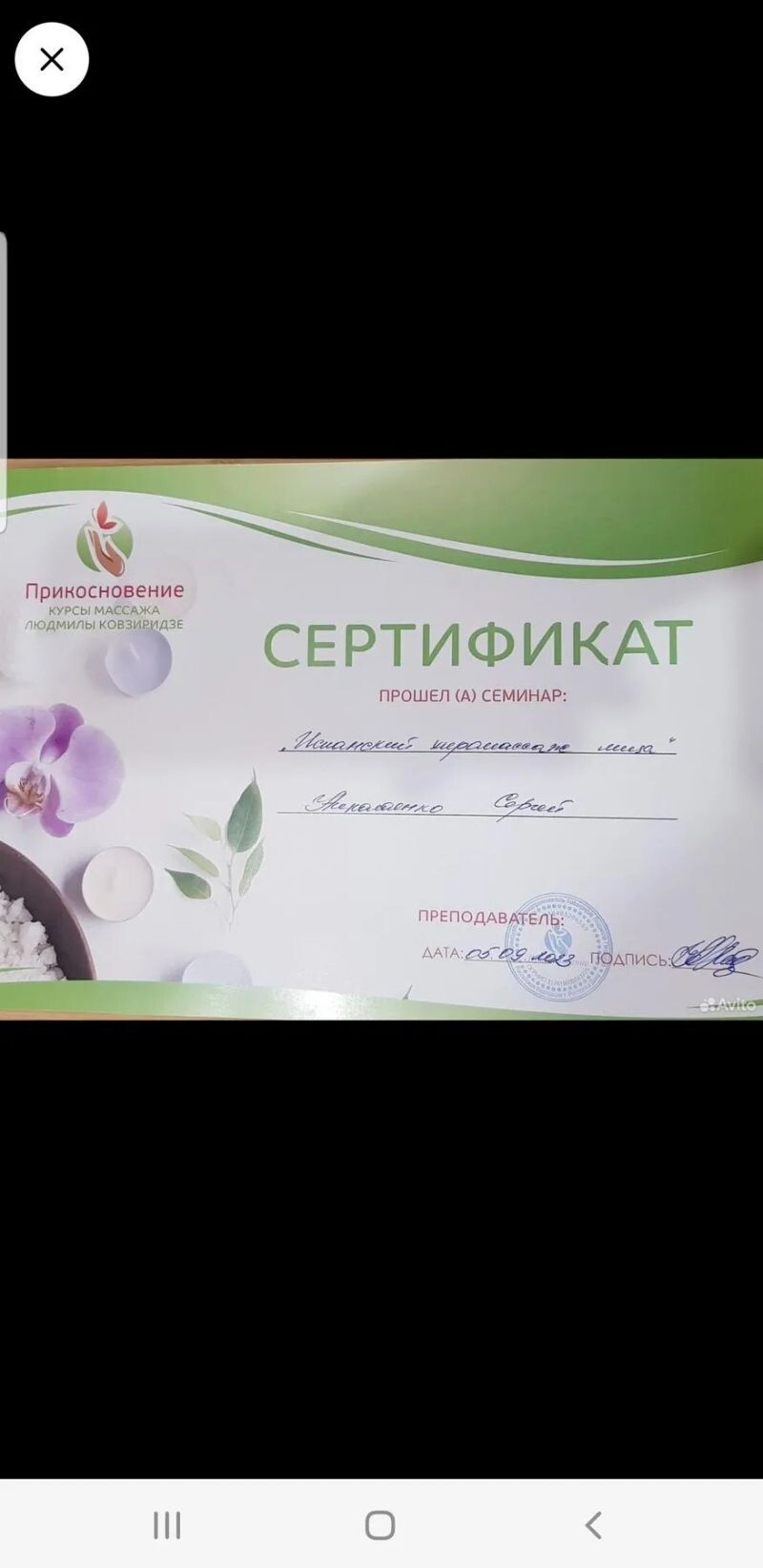 - Курсы массажа Людмилы Ковзиридзе «Прикосновение», семинар «Испанский хиромассаж лица», 2023 г.