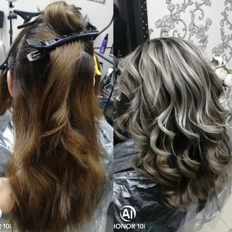 - Калифорнийское мелирование волос 5500 ₽ за усл.