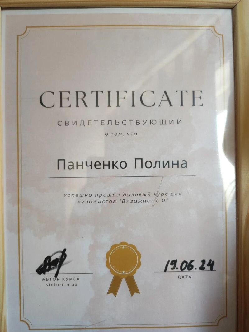 - Авторский курс «Визажист с 0», 2024 г.