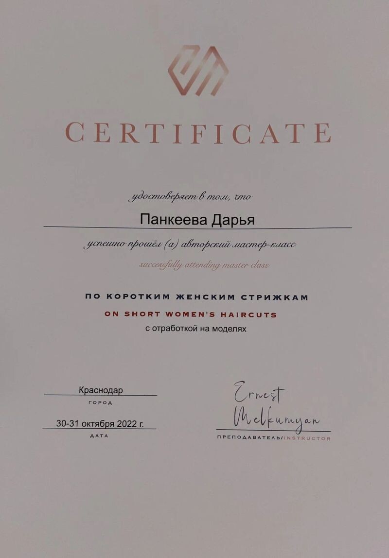 - Авторский мастер-класс по коротким женским стрижкам с отработкой на моделях, 2022 г.