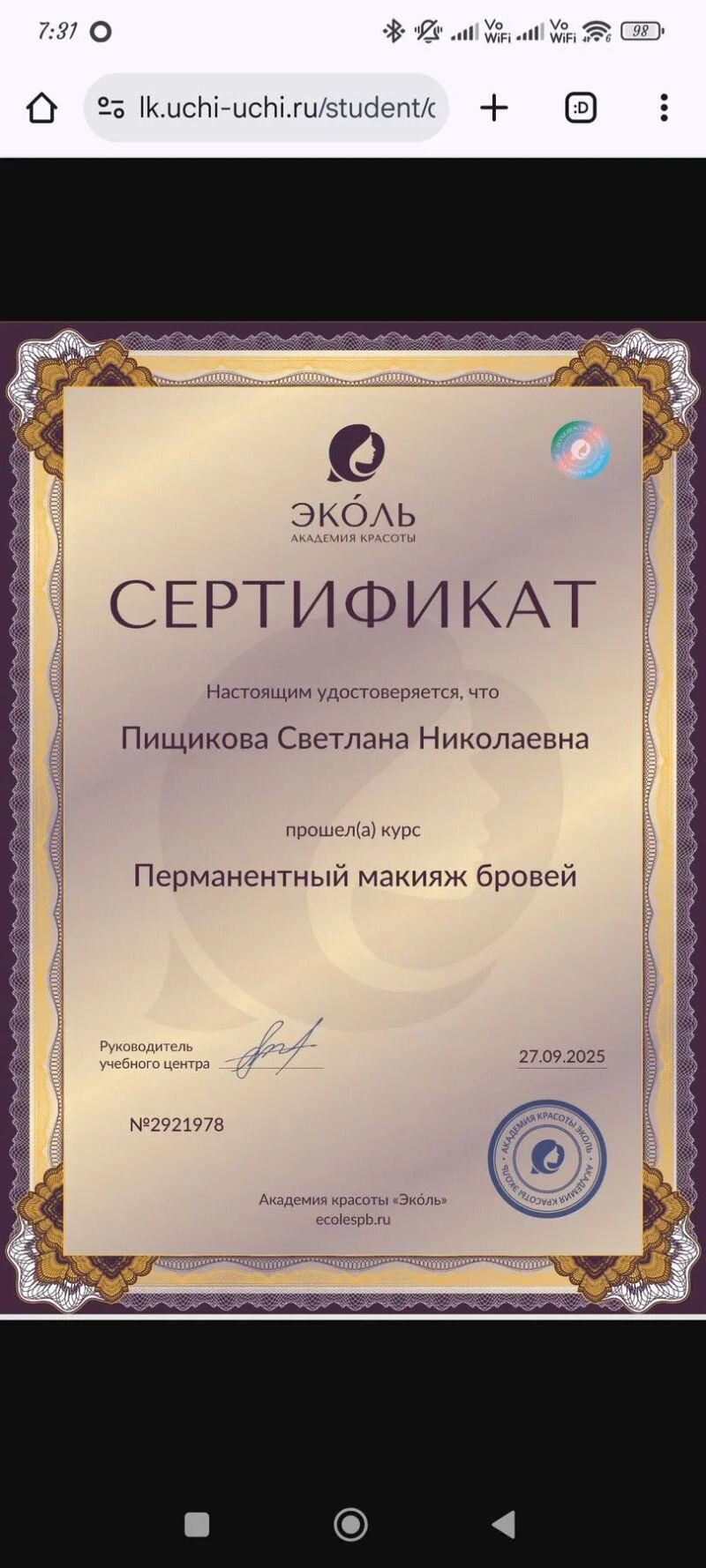► Связаться с Пищиковой Светланой Николаевной можно за пару минут. Нажмите на кнопку «Записаться к мастеру» и заполните короткую форму.