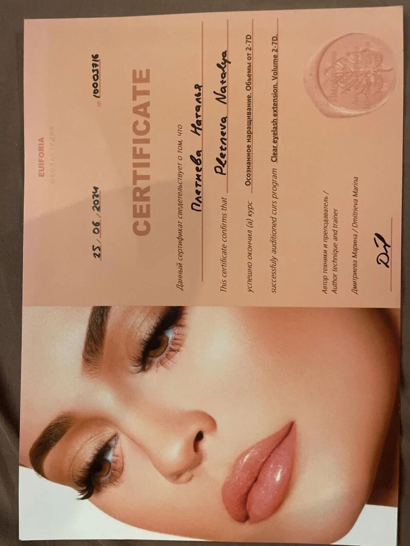 - Школа-студия Euforia, курс «Осознанное наращивание. Обьемы от 2-7D», 2024 г.