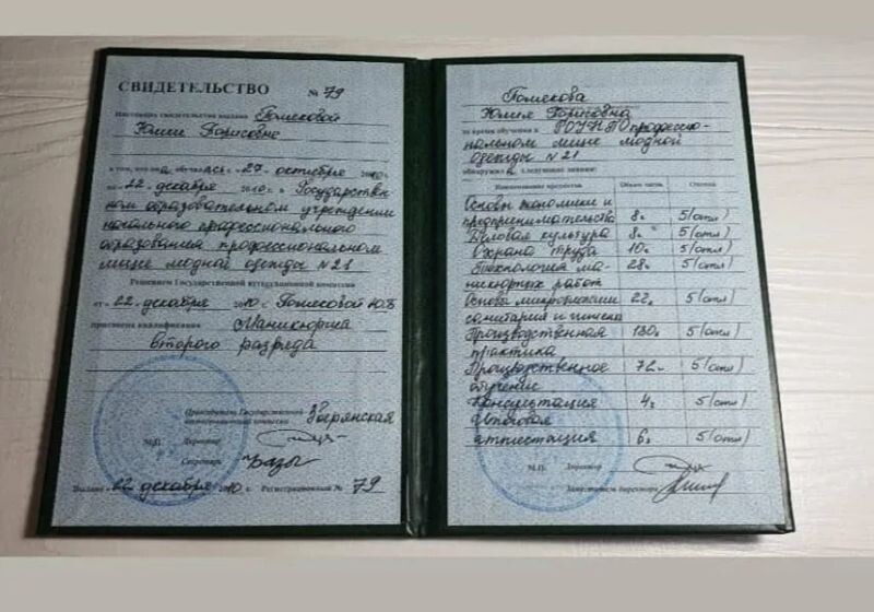 - Профессиональный лицей модной одежды № 21, мастер маникюра, 2010 г.
