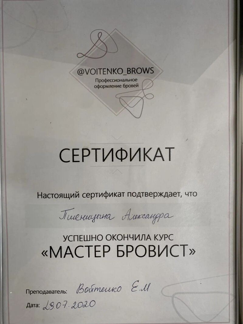 - @Voitenko_brows, курс «Мастер бровист», 2020 г.