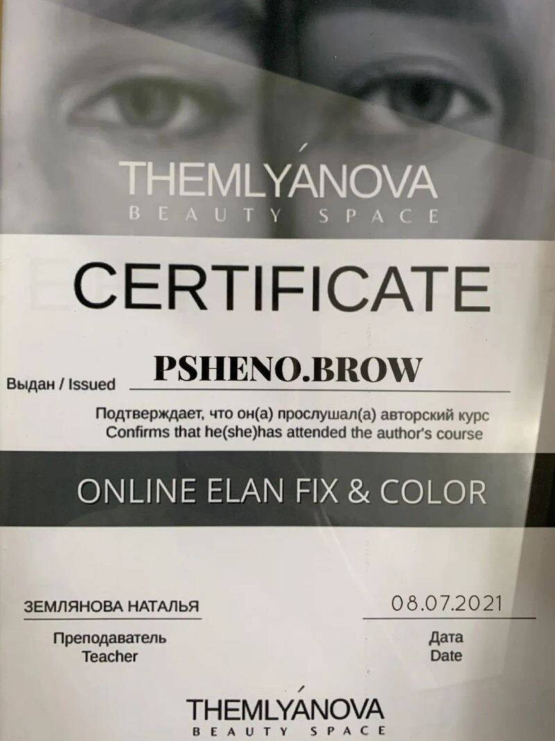 - Themlyanova beauty space, курс «Online elan fix & color», 2021 г.